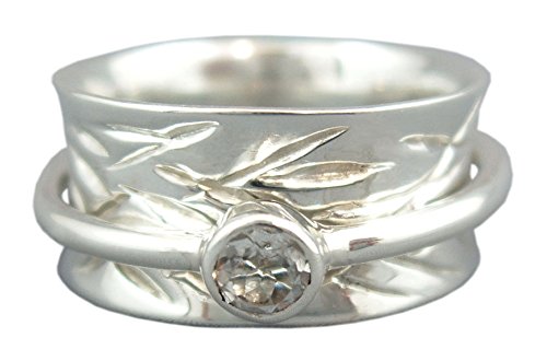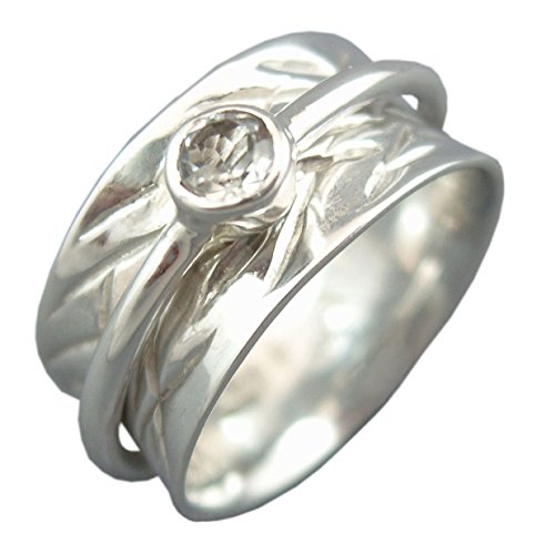 -. Title : Energy Stone "CROWN CHAKRA" 5mm Faceted Clear Quartz Silver Meditation Spinning Ring (Style# USA26-QZ)