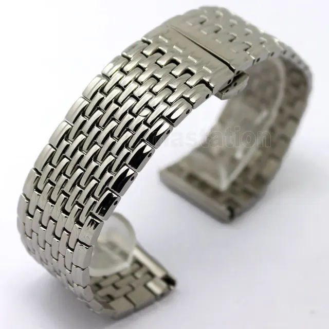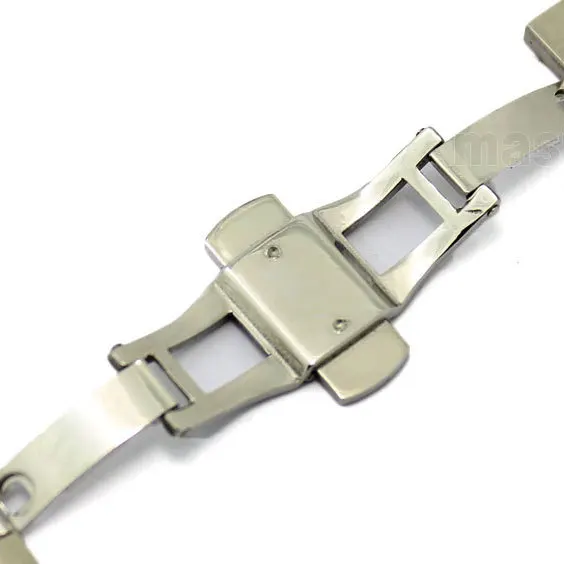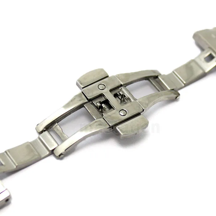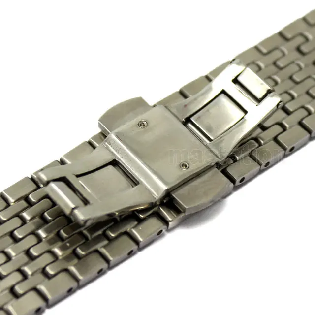 22 미리메터 실버 손목 석영 여성 남성 시계 밴드 스트랩 팔찌 스테인레스 스틸 높은 품질 butterfly 버클 gd013122