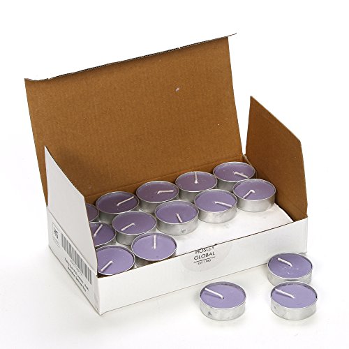 Hosley Pack of 30 Lavender Tea Light Candles. Hand Poured Using a Wax Blend with Essential Oil Fragrance. Ideal Gift for party favor, weddings, Spa, Reiki, Meditation, Bathroom O9