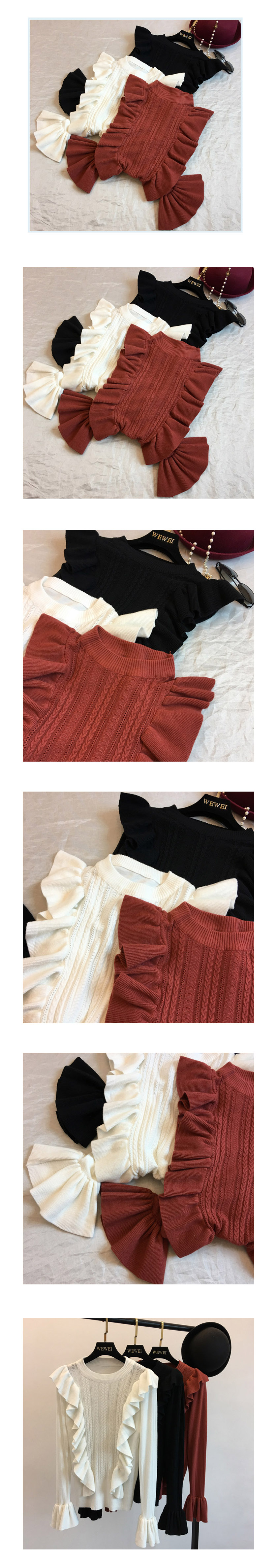 Direct import, Autumn ruffle round neck Goliath slim knit Daily Coordinate Item Office Look