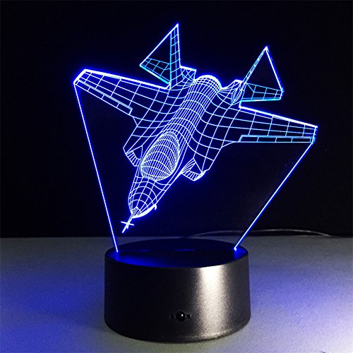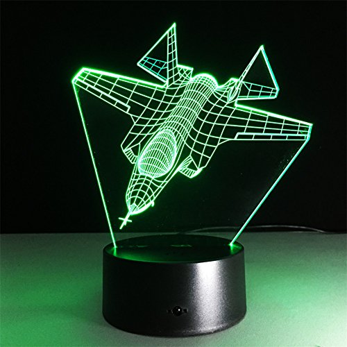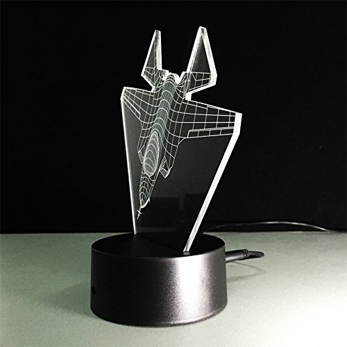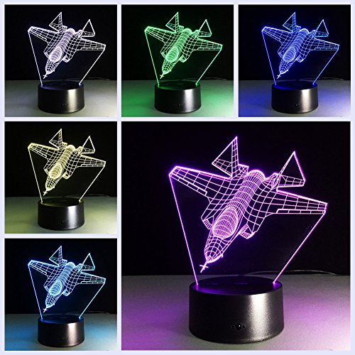 TRADE Miniature Fighter Art Sculpture 3D Visualization Illusion 7 Color Change LED Touch Switch Children Kids Desk Lamp with USB or 3-AA Batteries Charger Toy Gift