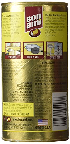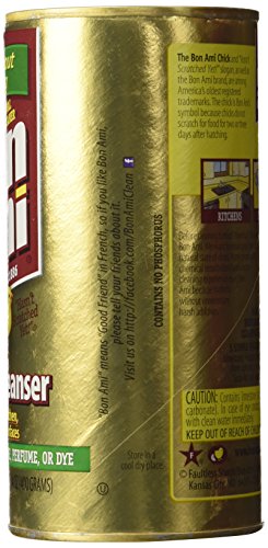 -. Binding : Health and Beauty -. Brand : Bon Ami -. Color : White -. EAN : 0695140046966 -. Feature : "BON AMI" Powder Cleanser / A single 14 oz. container / For use on cookware, hard kitchen & bathroom surfaces / Will not scratch / Cleans without dye, perfume, or chlorine -. IsAdultProduct : 0 -. Label : Bon Ami -. Manufacturer : Bon Ami -. Model : 10742 -. MPN : 10742 -. PackageQuantity : 1 -. PartNumber : 10742 -. ProductGroup : Health and Beauty -. ProductTypeName : HEALTH_PERSONAL_CARE -. Publisher : Bon Ami -. Size : 14oz -. Studio : Bon Ami -. Title : Bon Ami Powder Cleanser 14oz -. UPC : 695140046966