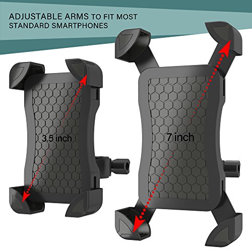 Durable & Secure: The clamp on the mount comes with four support corners to ensure your phone stays securely attached during your rugged and bumpy bicycle ride. Silicone inserts and back grip absorb shock to prevent shaking.