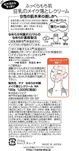 全成分 : ミネラルオイル、水、グリセリン、ステアリン酸グリセリル(SE)、BG、イソヘキサデカン、ステアリン酸、ポリソルベート60、イソステアリン酸PEG-6、豆乳発酵液、ダイズエキス、ダイズタンパク、スクワラン、エタノール、エチルヘキシルグリセリン、カルボマー、ジメチコン、水酸化Na、フェノキシエタノール、メチルパラベン