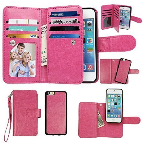 xhorizon 2-in-1 Magnetic Detachable Wallet Card Slots Cash Compartment Case Cover for iPhone 5/5S Product Features: -Luxury soft outer leather and removable snap-on shell