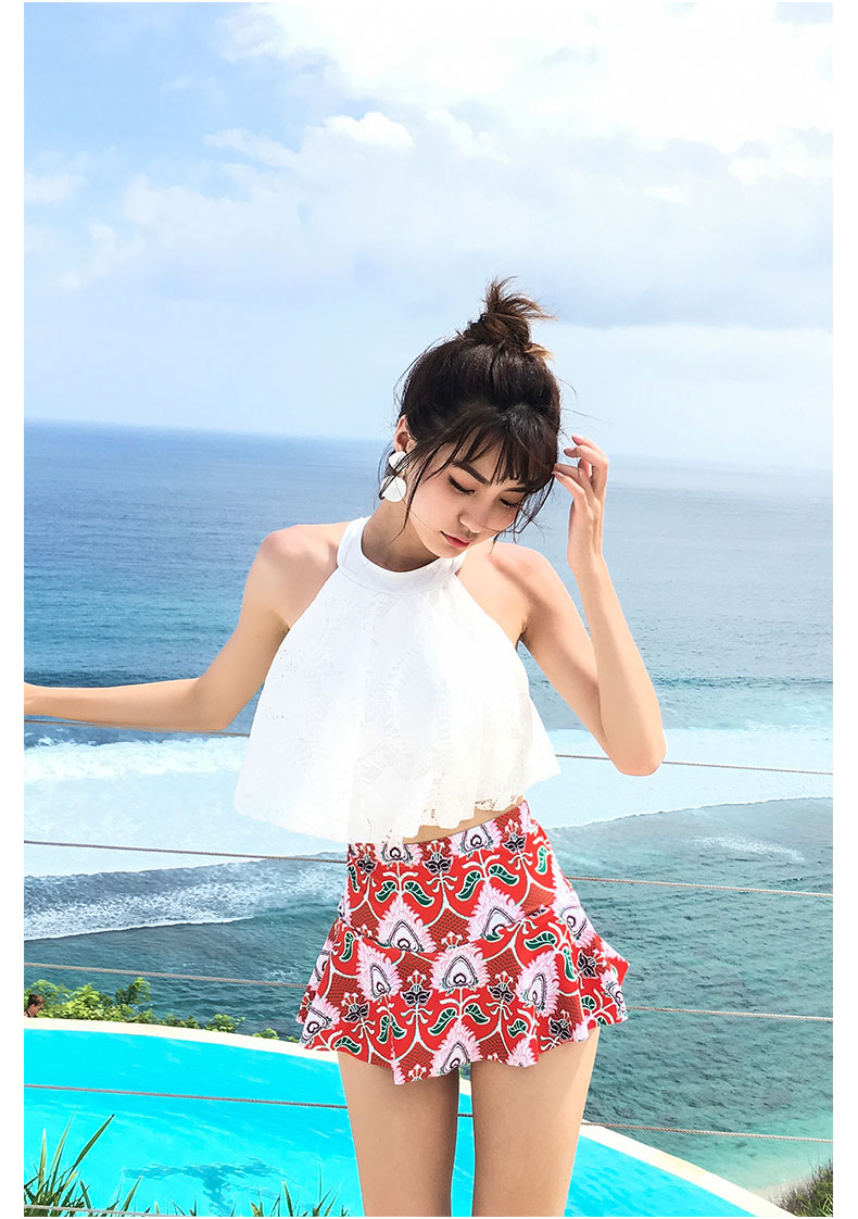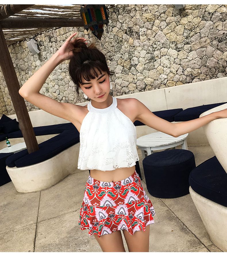 ふわりと揺れるフレアレースとボトムスの裾が女性らしい一着♪