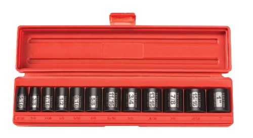 TEKTON 3/8-Inch Drive Shallow Impact Socket Set, Inch, Cr-V, 12-Point, 5/16-Inch - 1-Inch, 12-Sockets | 47911