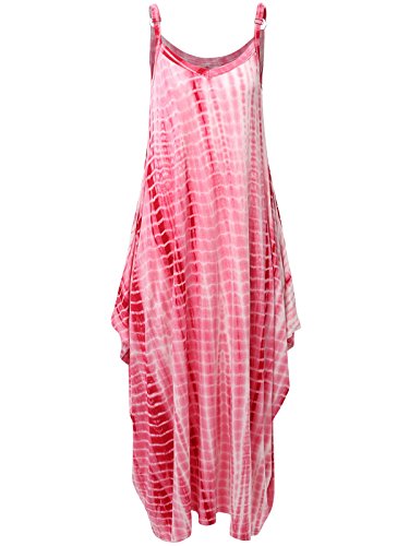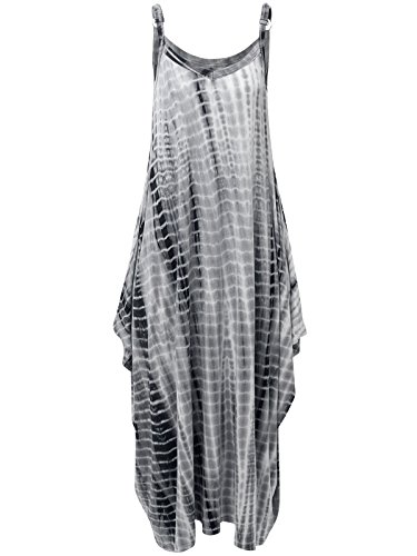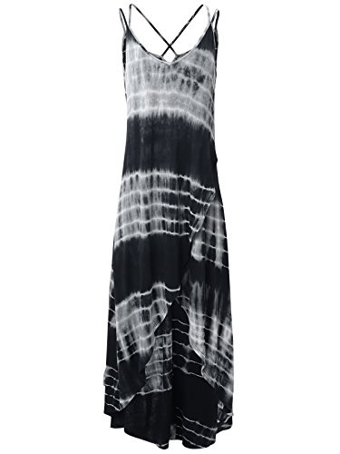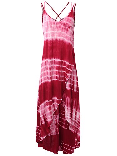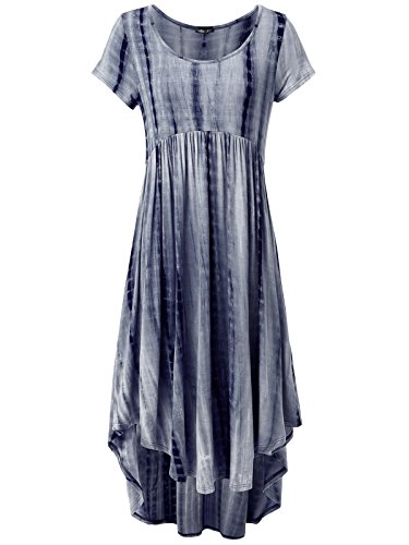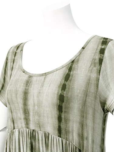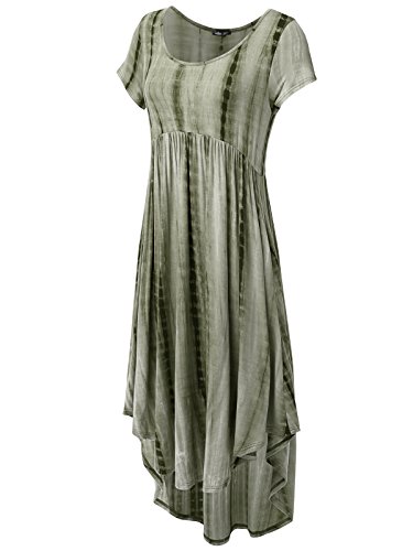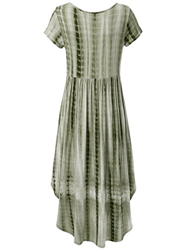 JayJay Women Boho High Low Casual Maxi U-Neck Short Sleeve Tie Dye Print Long Dress With Pocket,OLIVE,L