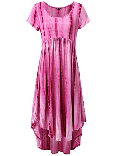 Feature: Tie Dyeing Print, Summer dress, Short Sleeve, High Low Pleated, Loose fit, Plus Size, Midi Dress, Scoop Neck, Women Casual, With Two Pocket