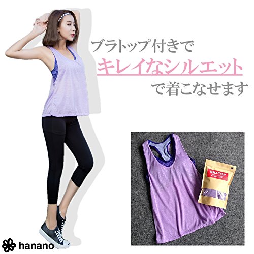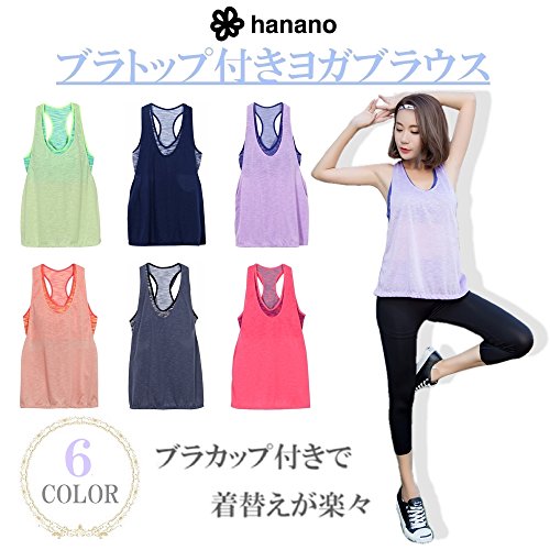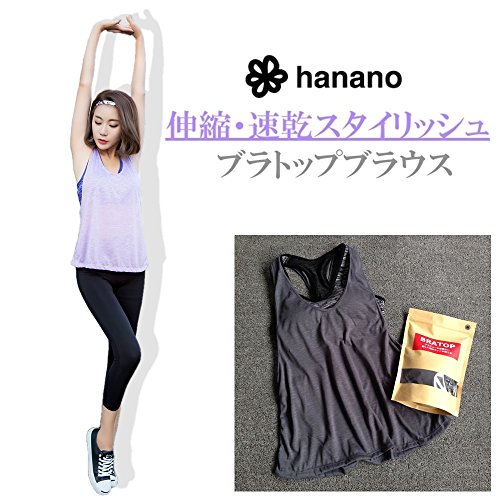 Hanano 【blume】요가 웨어 브라 톱 부착 탱크 탑 컵 부착 블라우스 캐미숄 6색 스트랩 신축속건 휘트니스
