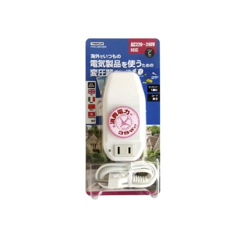 -. Title : ヤザワ 海外旅行用変圧器 トランス式 AC220V-240V 容量38Wまで 本体プラグC 付属プラグなし コードあり(コード長750mm) HTDC240V38W
