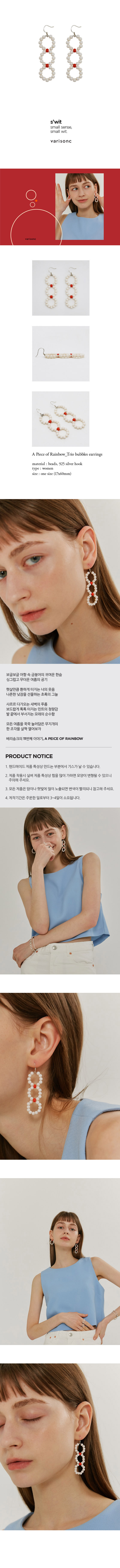 | Trio bubbles earrings 보글보글- 어항 속 금붕어의 귀여운 한숨을 엮은 화이트오렌지 비즈 드롭이어링 [A/S 안내] - 14일 이내의 끊어짐 등 제품 불량에 대해서는 varisonc가 왕복 택배비를 부담하여 교환해드립니다. - 14일 이후의 끊어짐에 대해서는 고객님께서 왕복 택배비(6천원)을 부담하시면 1:1로 무상 맞교환해드립니다. - 구매일 이후 3개월 동안 제품 하자의 경우 무상 A/S 해드리며 추가의 재료가 필요한 경우에는 수선비가 발생할 수 있습니다. - 단, 소재 특성 상 제품 하자가 아닌 고객 부주의로 인한 경우에는 A/S가 어려울 수 있으니 양해 부탁드립니다. - 수선 제품 왕복배송비는 고객 부담입니다. [교환 및 배송 안내] - 제작기간은 주문일로부터 3~4일이 소요됩니다. (영업일 기준) - 베리송크의 모든 제품은 주문제작상품으로 교환 및 환불이 어려우니 신중한 구매 부탁드립니다. - 제품 하자 시에는 동일한 제품으로 교환 가능하며, 받으신 포장상태 그대로 반송 부탁드립니다. |