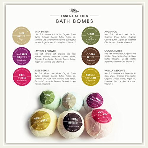 The set includes 6 bath bombs, eachone with different essential oils and properties:
