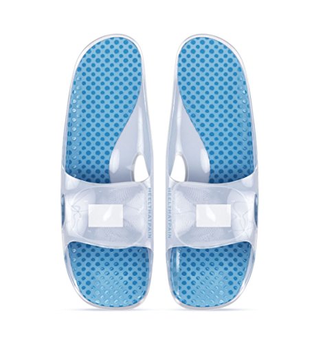 Studio : Heel That Pain Publisher : Heel That Pain Binding : Health and Beauty Product Description HTP Ice Therapy Slippers are an easy alternative to traditional icing methods. More comfortable than an ice foot bath and more convenient than trying to secure an ice pack or bag of frozen peas to your feet with a bandage, you can wear these slippers any time you are experiencing heel pain, foot pain, or swelling. Experience the all natural healing and immediate pain relief that you need with these heel pain slippers. Made to fit any budget, they cost a small fraction of the price of other foot ice packs, and are reusable and easy to clean. Our unique one-size fits all design with adjustable straps fits women's shoe sizes 5 - 14 and men's shoe sizes 4 - 13 . These slippers are also lightweight and stay in place, difficult for typical ice packs to do. Please note that these Ice Slippers are not meant for walking! They are meant to be worn while your feet are elevated or on the ground while you are sitting. Standing and walking in them could cause them to burst. To Use Ice Pack Therapy Slippers for Plantar Fasciitis or Heel Pain: 1. Store them in the freezer for at least 4 hours. 2. Wearing a light sock, slip them over your feet and adjust the velcro so that they fit securely. 3. Relax with your Ice Pack Slippers for 10-15 minutes. 4. Rinse them off with water and a mild soap, and dry thoroughly before putting them back in the freezer 0