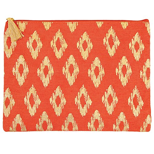 Mud Pie 8613284O Shimmer Juco Carry All Case Orange,Poppy Red Ikat
