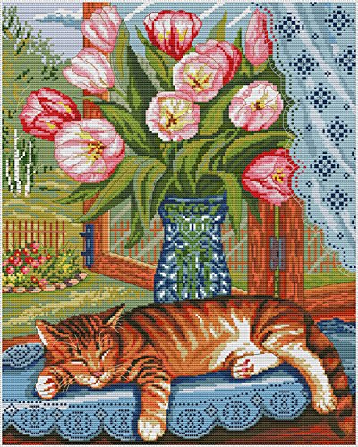 Crossdecor Needlecrafts Counted Cross Stitch Kits 14 Count, Cat on The Windowsill
