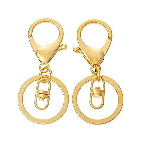 Gold Tone Keychain & Keyring w/ Lobster Claw Style Clasp 6.9cm(2 6/8") x 3cm(1 1/8"), 10 PCs