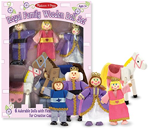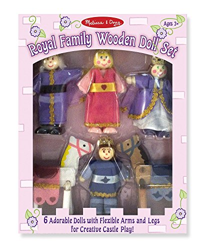 - Feature : ONE FREE Melissa & Doug Scratch Art Mini-Pad is bundled with this item. The style of the mini-pad you receive is randomly picked. The Scratch Art Mini-Pad is considered a FREE bundled item. If you return this item, please return it as well. / Roll out the red carpet, here comes the queen and the king, the princess, the prince and two royal mounts / With flexible arms and legs, these six wooden figures add the royal touch to castle play / Ideal companion piece for Melissa & Doug princess castle (SOLD SEPARATELY) / Exceptional quality and value. For age 3+.