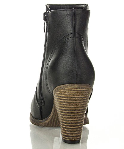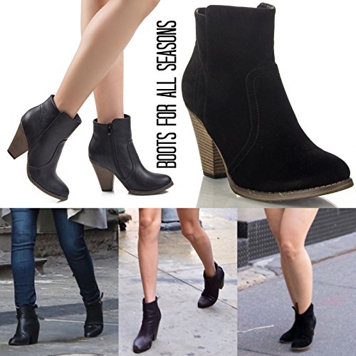 -. Title : ROF Luxe-01 Women's Fashion Comfy Almond Toe Stacked Block Heel Side Zipper Ankle Booties