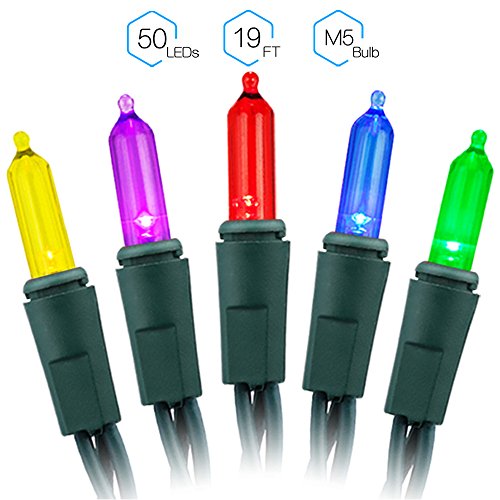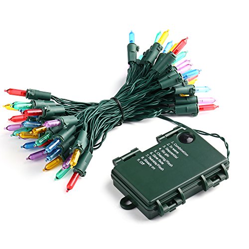 RECESKY Christmas String Lights with Timer - 50 LED 19ft Fairy Battery Operated Mini String Light for Outdoor Indoor Garden Patio Party Home Wreath Xmas Decor Christmas Tree Decoration - Multi Color