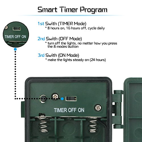 ✔ SMART TIMER - 1st "TIMER" Mode (automatically keep 6 hours on and then 18 hours off); 2nd "ON" mode (work on 24 hours); 3rd "OFF" mode (turn off the lights, no matter how you press the 8 modes button)