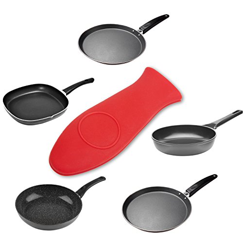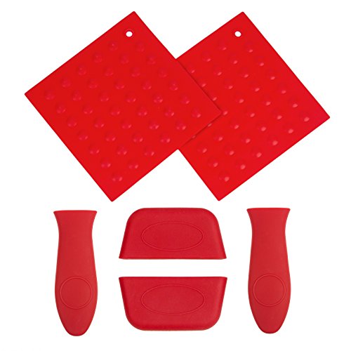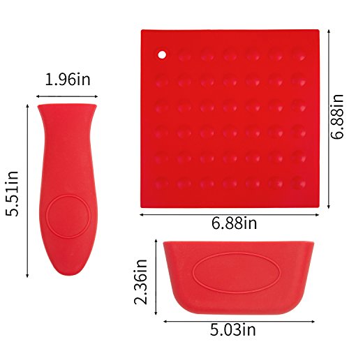 BestGreen Silicone Hot Handle Holder - Silicone Pot Cover Holder Assist Handle Heat Resistant Oven Mat ( Red )for Cast Iron Skillets , Pans , Frying Pans & Griddles(6 Piece)