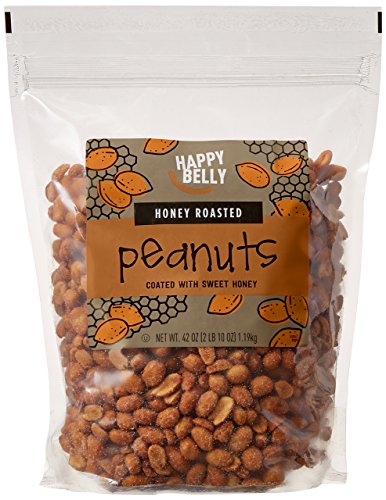Happy Belly Honey Roasted Peanuts are coated in real honey and sprinkled with sea salt. Our 42-ounce stand-up, re-sealable bag keeps nuts crunchy in between salty-sweet snack sessions.