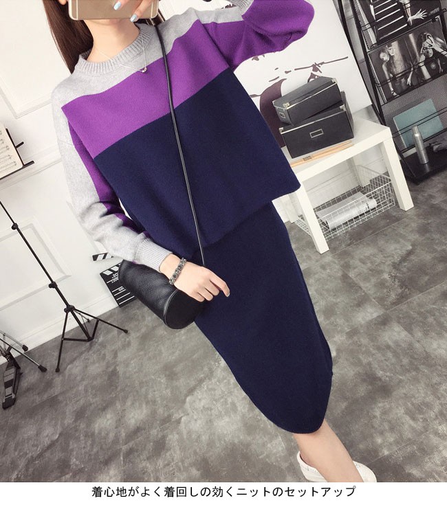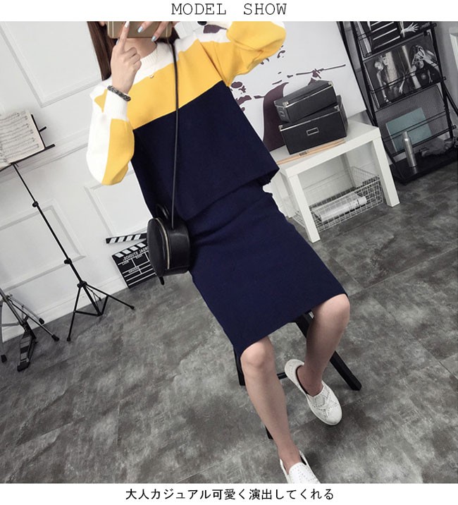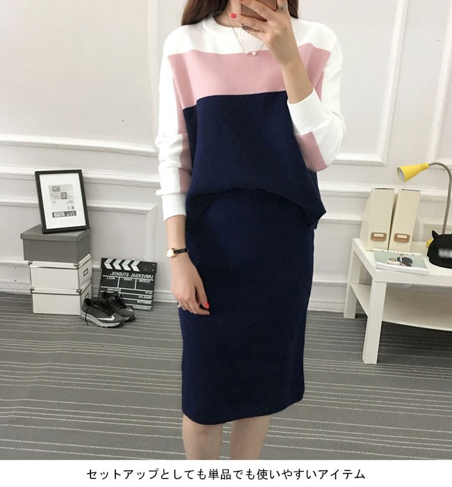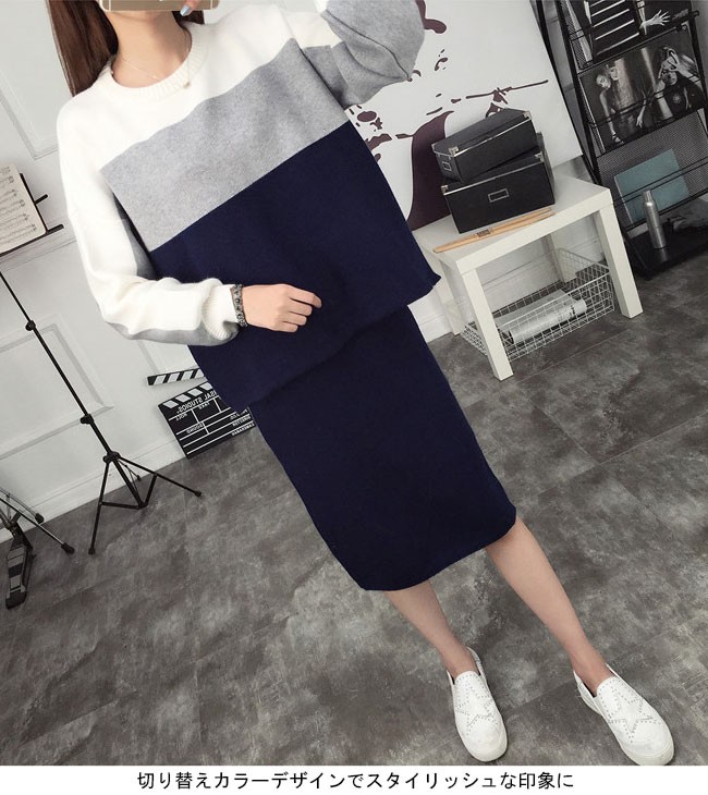 | 商品名 | レディースニットセットアップ レディース2点セット 切り替えカラー 配色 クルーネック タイトスカート スカートセット セーター 上品 オシャレ 女らしい 可愛い スイート ニットアップ 秋冬 |
