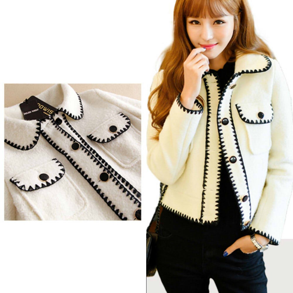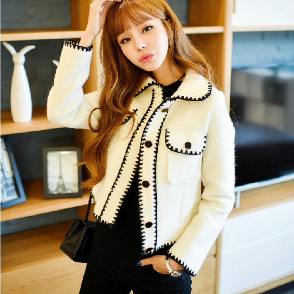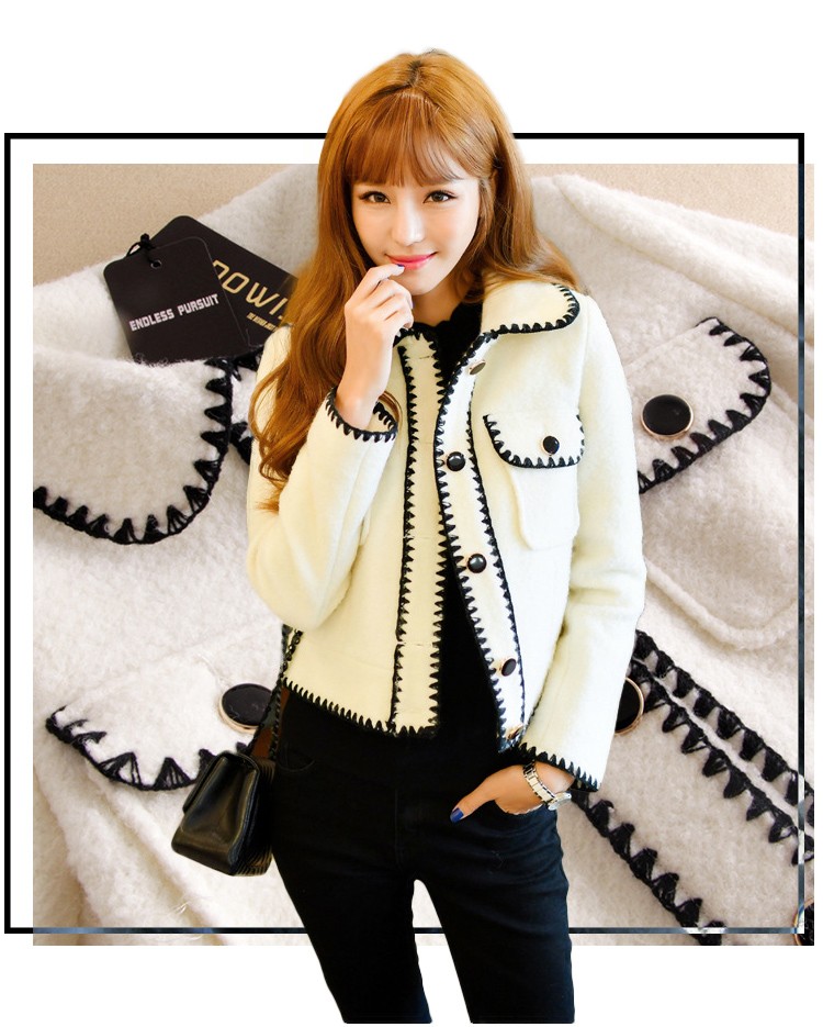 オフィス・通勤☆可愛い トリミングステッチ カバーオール ウールジャケット