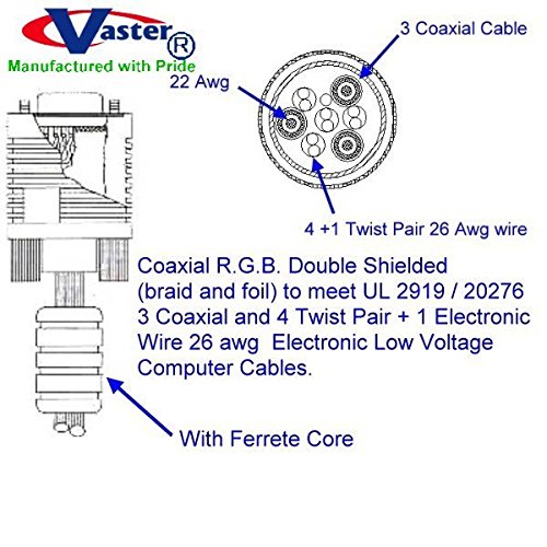 -. Feature : Cable: Coaxial R.G.B. Double Shielded (braid and foil) to meet UL 2919 / 20276 3 Coaxial and 4 Twist Pair + 1 Electronic Wire 26 awg Electronic Low Voltage Computer Cables. / Super VGA Monitor cable / HD15 Male to Female