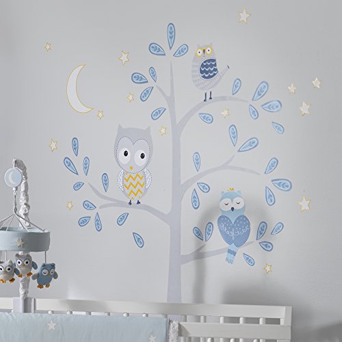 Finish off your designer nursery with our jumbo sized tree complete with Hoot and his feathered friends. Includes the moon and stars. The easy-on, easy-off wall appliques come in a set of 4 sheets that will not harm your walls and are reusable