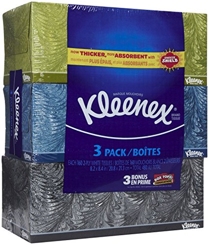Kleenex Trusted Care White Facial Tissue, 160 2-Ply Tissues, (Pack of 3)
