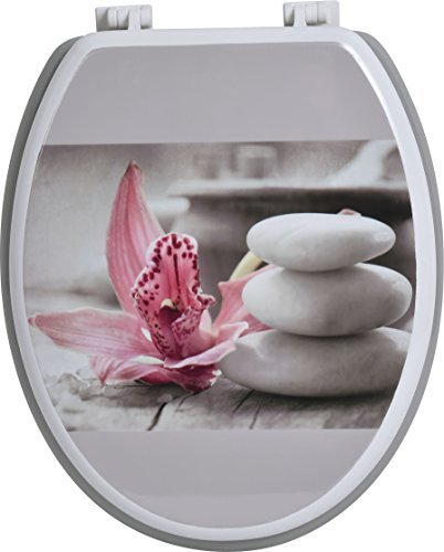 -. Feature : CHECK CAREFULLY THE SIZE NEEDED , this toilet seat is 17.5L X 14.75W / Made of MDF (wood), comfortable with 4 bumpers / Adjustable white plastic hinges (3 positions= 3 possible lengths) / Oval toilet seat, fits mainly toilet bowls, color gray and fuchsia / Imported, Complete your collection CHIC & ZEN with other products