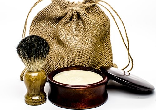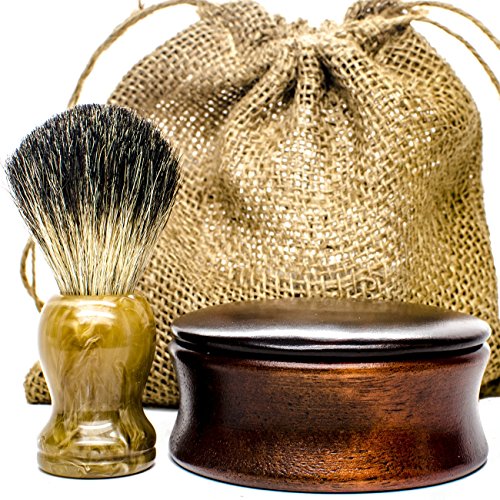 Include a wood shaving bowl + organic shaving soap + 100% Pure badger shaving brush