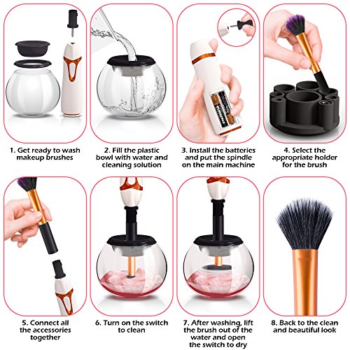 Professional Makeup Brush Cleaner Automatic Spin Makeup Brush Cleaner Dryer Machine Bonus Cleaning Solution Best Electric Rotating Portable...