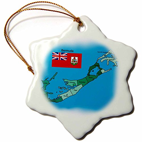 3dRose orn_151937_1 Flag and Map of The British Overseas Island Territory Bermuda and All Parishes Snowflake Ornament, Porcelain, 3-Inch