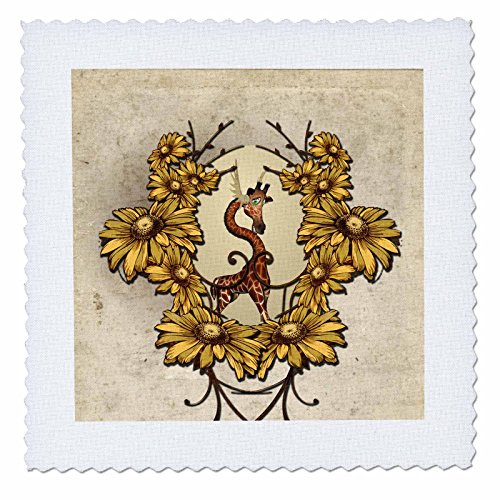 3dRose Funny, Happy Giraffe with Flowers Quilt Square, 6 x 6"