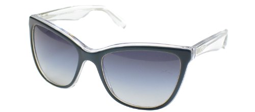 Rectangular Cateye look featuring contrast black tone at front rims and silver-tone logo at side arms