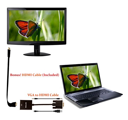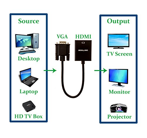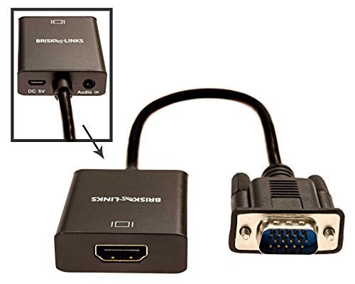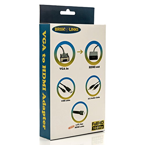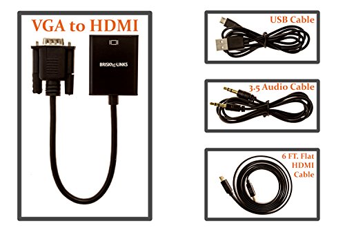 Brisk Links VGA To HDMI Output 1080P HD Audio TV AV HDTV Video Cable Converter Adapter With Audio Support - Includes Bonus High Speed HDMI Cable 6 FT