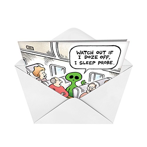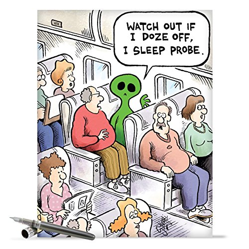 J9676 Jumbo Funny Birthday Card: Alien on Plane With Envelope (Extra Large Version: 8.5'' x 11'')