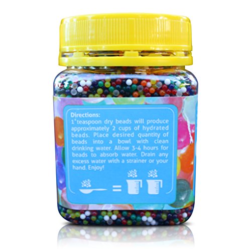 -. Feature : Magic Beadz start as tiny hard balls but quickly grow many times their original size to become bouncy, squishy, and beautiful jelly water beads when you add water. / Keep kids busy for hours and make a fun game, great learning tool, science project, or sensory bin item. / Nontoxic, colorfast (won't fade or bleed!), non-flammable. Fully tested and exceeds all children's toy safety requirements. / Perfect budget-friendly and safe refill or replacement for all Orbeez products. This rainbow mix includes 12 unique colors. / Try Magic Beadz risk free with our 100% GUARANTEE. Click "Add to Cart" or "Buy Now" to get started!