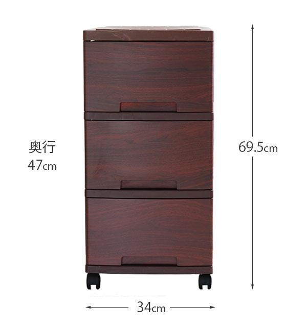 | サイズ | 本体:約幅34×奥行47×高さ69.5cm(キャスター含む)、引出し内寸:約幅28.5×奥行43×高さ17.5cm 個装サイズ:49×36×38cm |