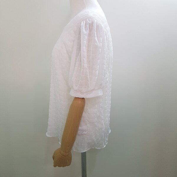 엠보싱처리로 입체감 있는 볼륨 블라우스이며 공기가 잘 통해 시원하다