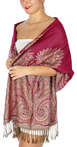 Product Description Double layer woven jacquard thicker pashmina shawl with fringes Size 28 x 70 inch Weight 8.5 oz Small side label of 55% Acrylic 45% Viscose D40 Big... 0