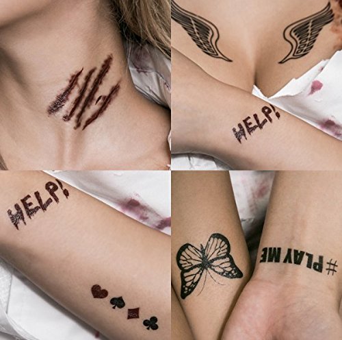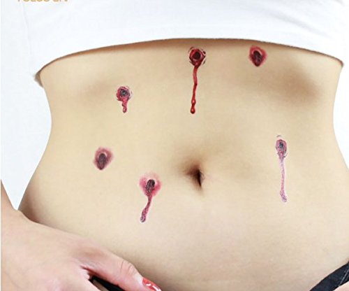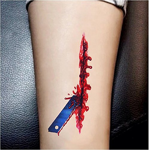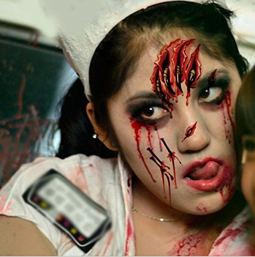 -. Feature : *Quality waterproof tattoos - 100% waterproof and sweat-proof, tattoo may last for 3-5 days. These scared tattoos are non-toxic and safe to wear. Fun for all ages, including kids & adults, and can be worn anywhere on your body you like such as waist, chest, neck, arms, back, legs, bikini, you can also use it to cover scars, etc. / *Over 50+ terrified designs - 50 sheets temporary halloween tattoos with the size 4.1 x 2.4 inches, more than 50+ horrible tattoo designs in various color. They are very latest hot & trendy designs, including wound, stitch scar, bloody hands, bloody foot step, bloody mouth, bruise and many more. / *Easy to apply and remove - These tattoos are easily removable by rubbing alcohol or baby oil, coconut oil, or olive oil. Wait 10 seconds, rub alcohol or baby oil until removed. Please avoid soap, sunscreen and oils to prolong the life of your tattoos if you want to keep it for a few days. / *Create Your Own Body or Craft Art - Easily customize and create your own unique body art! Unbelievably realistic looking scars seem very true and natural and will offer multiple choices for you to decorate your festival to match your party costume, especially in the Halloween. This is a perfect decoration at Halloween for both kids and adults to use. / *Perfect Decoration for Halloween - Zombie horror designs tattoos will accessorize your outfits perfectly when you go to the Halloween parties, zombie or vampire cosplay parties. Also they will be a good choice to make a prank to your friends on AP.R.Il Fools' Day. Great trick to astonish and scare your friends with these scar decal face body art makeup tattoos.