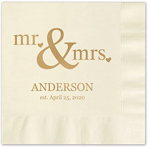 Product Description Personalized beverage napkins are custom printed in your choice of napkin color and foil color. These 3-ply napkins can be personalized for a wedding, baptism, graduation, anniversary or other special occasion. Be sure to order plenty of napkins for your 0