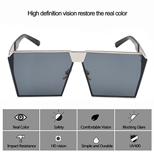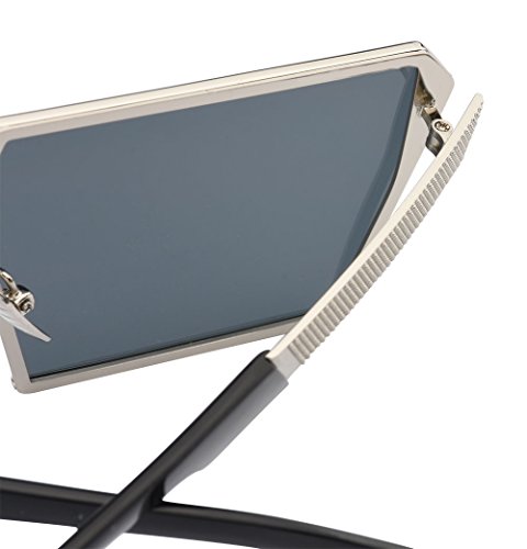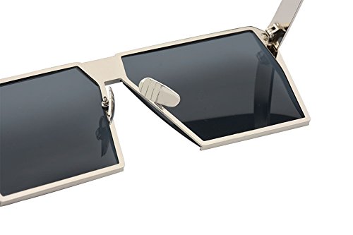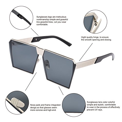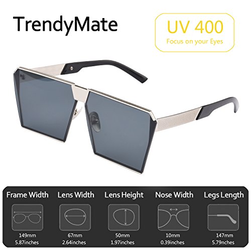 TrendyMate-Womens Men Reflective Color Mirror Lens Large Square Metal Rimmed Sunglasses Unisex (Silver Grey, 65)