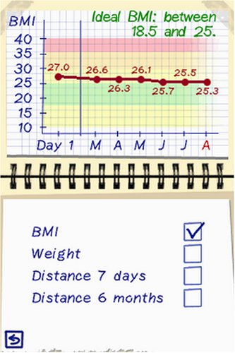 -. Feature : Create your personal profile and evaluate your improvement potential; then set up your objectives following the recommendations based on your personal profile / Input reward system on a daily or weekly basis, overall, per input category via a pedometer, physical activity and nutrition / The pedometer - free with the game and easily updated through your DS, it’s the best way to control your daily physical effort, challenge yourself and balance your food intake / All physical activities you achieve and good nutrition habits you acquire are converted into distance / Developed in collaboration with a fitness and a nutritionist
