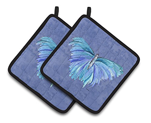 Caroline's Treasures Butterfly On Slate Blue Pair of Pot Holders 8855PTHD, 7.5HX7.5W, Multicolor