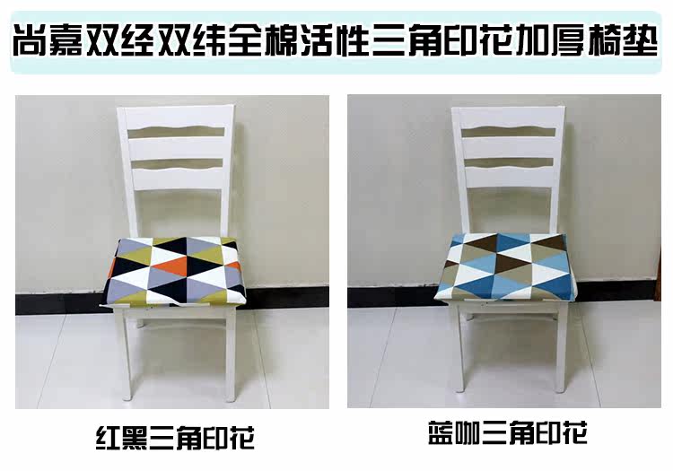 【Product Name】 double by double latitude cotton active printing sponge chair cushion【Material】 cotton【Fill】 3 cm bleached sponge【Color】 2 color optional【Process】 active printing and dyeing【Color fastness】 4 does not fade【Size】 40X40CM